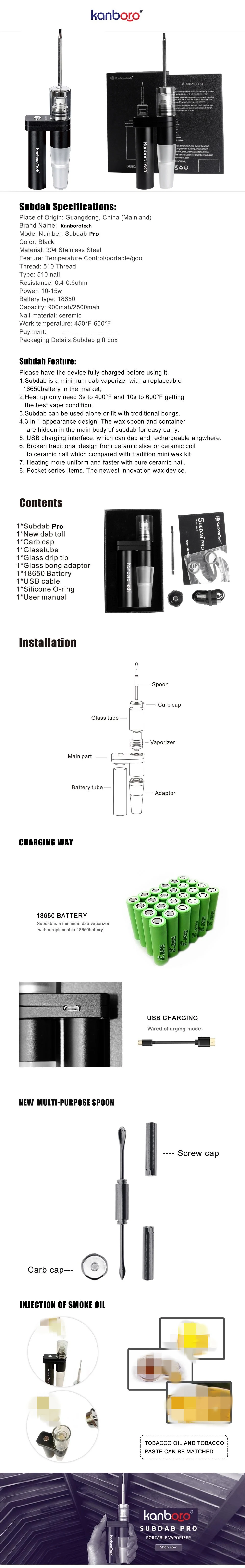 Kanboro – Cigarette électronique Subdab Pro, Kit d’huile concentré, avec batterie 2500mAh 18650, en céramique, pour cire d’herbes sèches