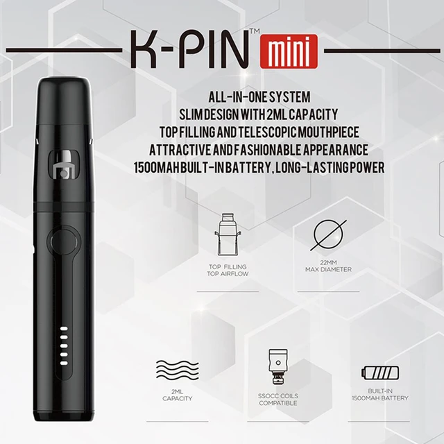 Le k-pin Mini dispose d’une capacité d’e-liquide de 2.0ml qui comprend