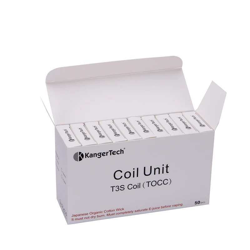 Les nouvelles bobines Kanger TOCC T3S/MT3S sont fabriquées avec du coton japonais au lieu d’une mèche en fibre. Les bobines TOCC sont uniquement compatibles avec les réservoirs Kanger T3S/MT3S.