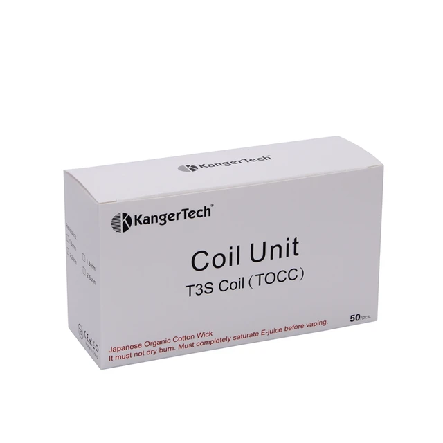 Les nouvelles bobines Kanger TOCC T3S/MT3S sont fabriquées avec du coton japonais au lieu d’une mèche en fibre. Les bobines TOCC sont uniquement compatibles avec les réservoirs Kanger T3S/MT3S.