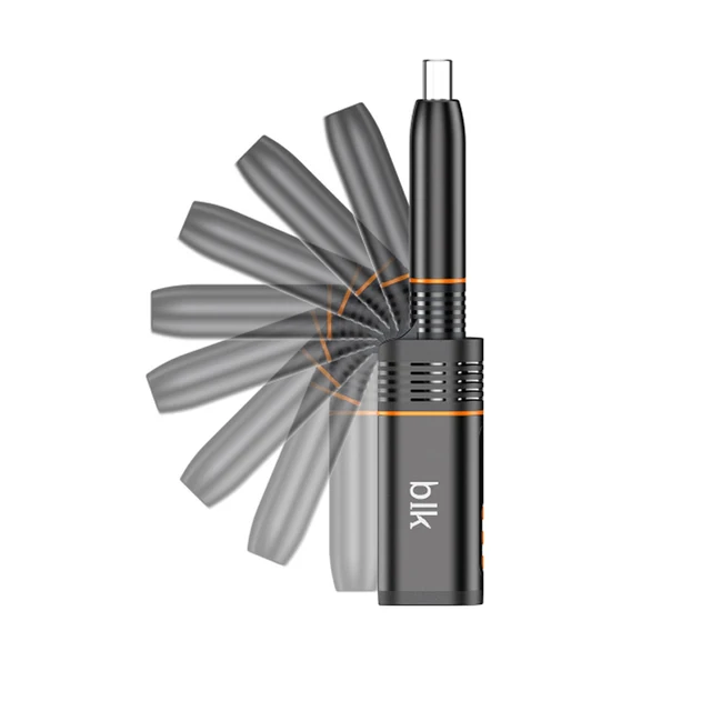 BLK Rotary Kit est un kit de vaporisateur d’herbes sèches. Il est alimenté par une capacité de batterie de 1800mAh et est livré avec une capacité de four de 1ml. Conçu avec un système de refroidissement à air intelligent, il peut réduire efficacement l’énergie thermique pour vous protéger des brûlures aux mains. Avec la conception de l’embout en verre d’extension pliable, il empêchera votre bouche de se brûler. De plus, il existe une conception de compte à rebours qui vous rappelle combien de temps il reste et la durée d’un cycle est de 8 minutes et vous pouvez ajouter le temps d’utilisation avant qu’il ne soit automatiquement désactivé. Le matériau du tube en verre est du verre pur alimentaire, qui isolera le chemin de l’air et fournira une vapeur pure et nuageuse. Vous pouvez voir la température, le temps d’utilisation et le niveau de la batterie avec l’écran OLED. Il y a également un aimant puissant intégré dans le corps, de sorte que le manchon de paille peut être rangé en toute sécurité et de manière fiable.