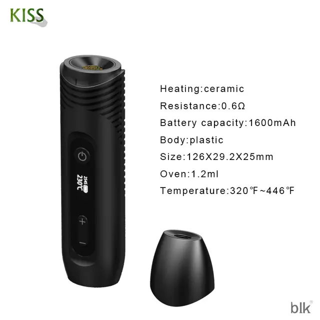 Le vaporisateur BLK Kiss est célèbre comme un vaporisateur d’herbes sèches qui est livré avec une taille compacte et un design ergonomique. Il se compose d’un four de 1.2ml et d’une batterie intégrée de 1600mAh. Avec du verre pur pour isoler le chemin de l’air, il vous fournit une vapeur pure et dense. Et il est conçu avec un bouchon de buse facile à enlever et à nettoyer. En outre, il utilise une conception de style obturateur propice à la dissipation thermique du port de charge de Type C. De plus, il est équipé d’un écran OLED pour afficher la température, le compte à rebours du temps et le niveau de puissance.