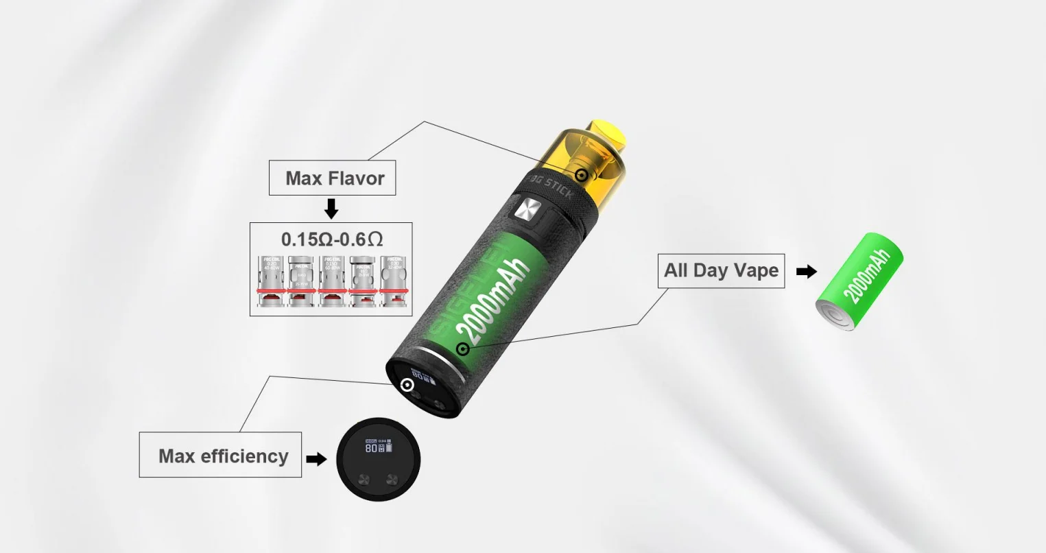 Kit de bâtons de cigarette électronique avec écran 100% d’origine sigelei, avec atomiseur