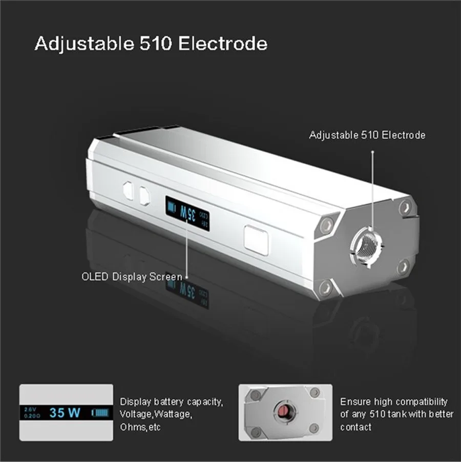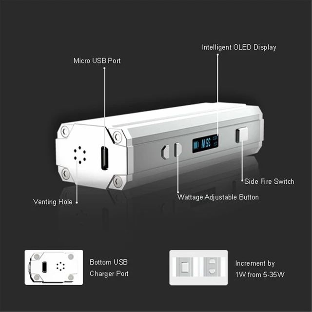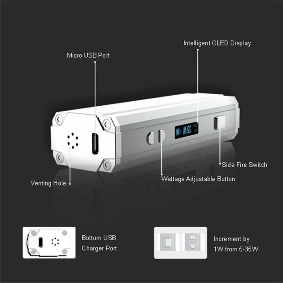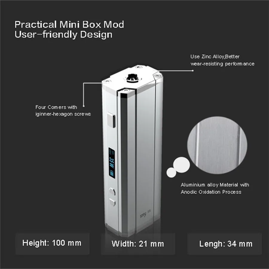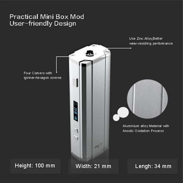 SMY35 est un mini mod de boîte à cigarettes électronique, il offre 1-35 watts de puissance, plus de puissance plus de fumée, et