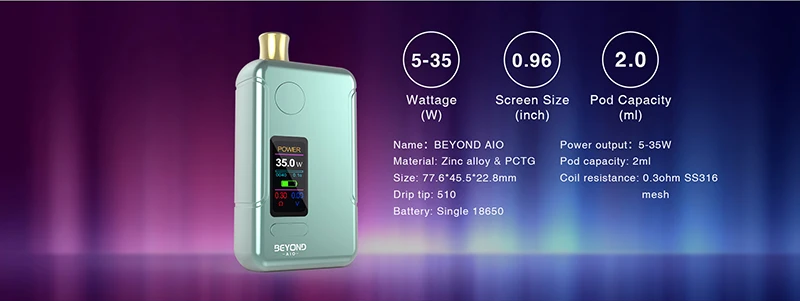 Au-delà du kit AIO 35W est le dernier produit à la mode en 2020. Il a un design de mode avant-gardiste, très belle apparence, tempérament noble. Écran couleur TFT de 0.96 pouces, vous pouvez voir clairement toutes sortes de données de fonction. Puce intelligente, vous permet de l’utiliser plus pratique et en toute sécurité, ne brûlera pas à sec. Prise d’air Super lisse. Conception magique sûre et sécurisée, peut être rapidement retiré! Utilisez-le, vous permet absolument d’avoir une expérience très agréable!