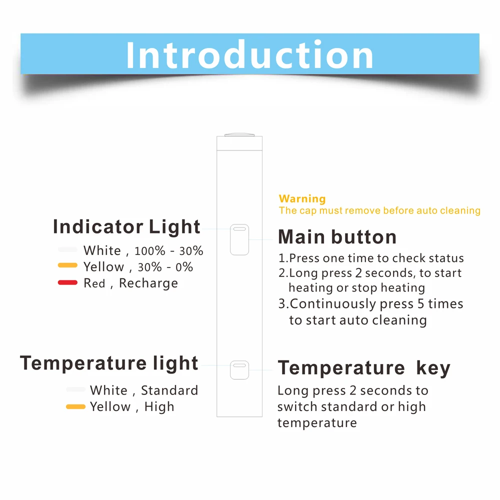 5.)Deux températures réglables, Différents bâtons de chaleur ont besoin de différentes températures de chauffage pour profiter de différentes saveurs.