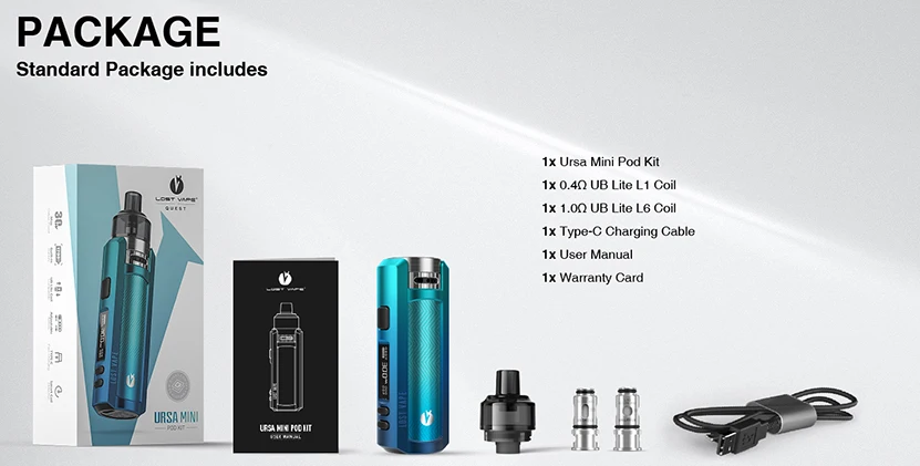 Le paquet de la Vape perdue Ursa Mini est livré avec: