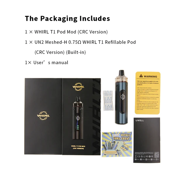 Soyez le premier à laisser votre avis sur “Kit de modules de cosses UWELL WHIRL T1 3 ml 16 W 1 300 mAh Kit de système de cosses à charge rapide de type C intégré Kit de vape de cigarette électronique”