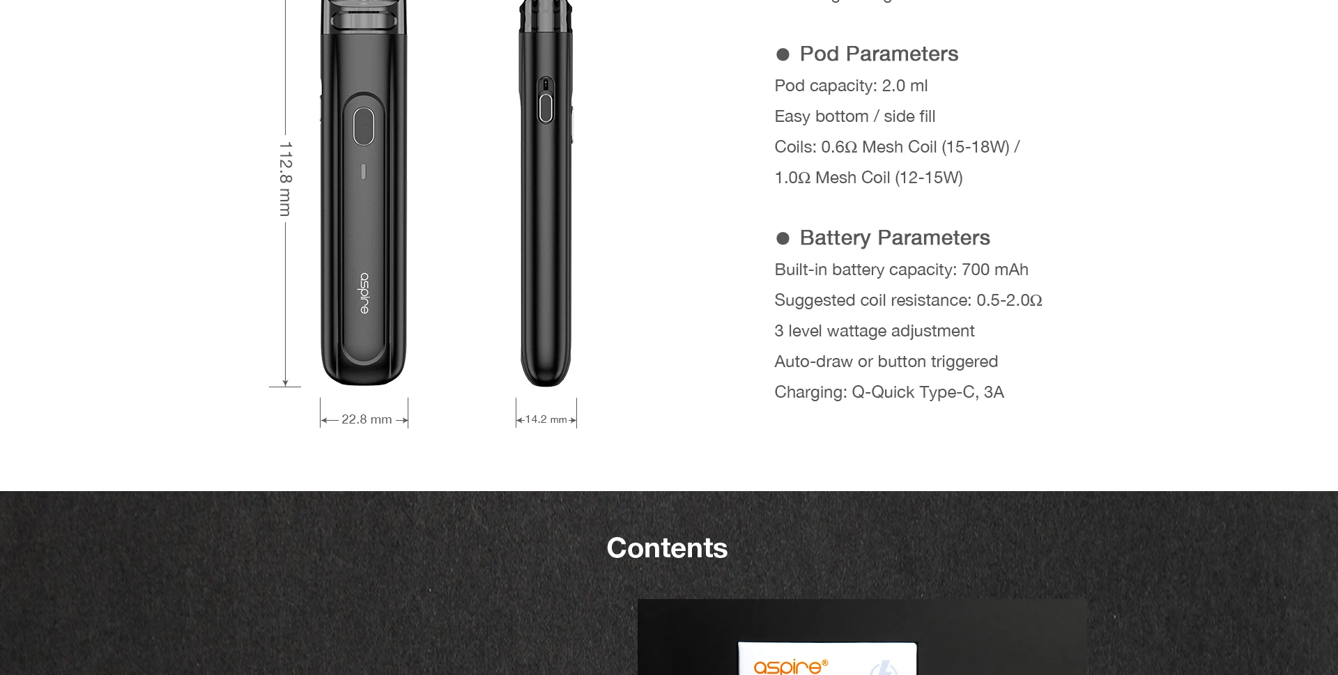 Aspire Flexus Q détails: