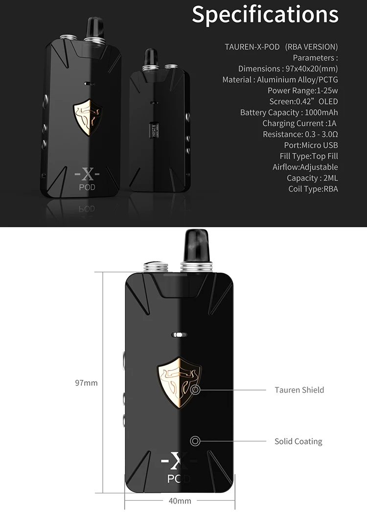Say hello to the new Tauren X Pod Kit comes with 1000mAh large built-in battery providing the max output reaches to 25W and