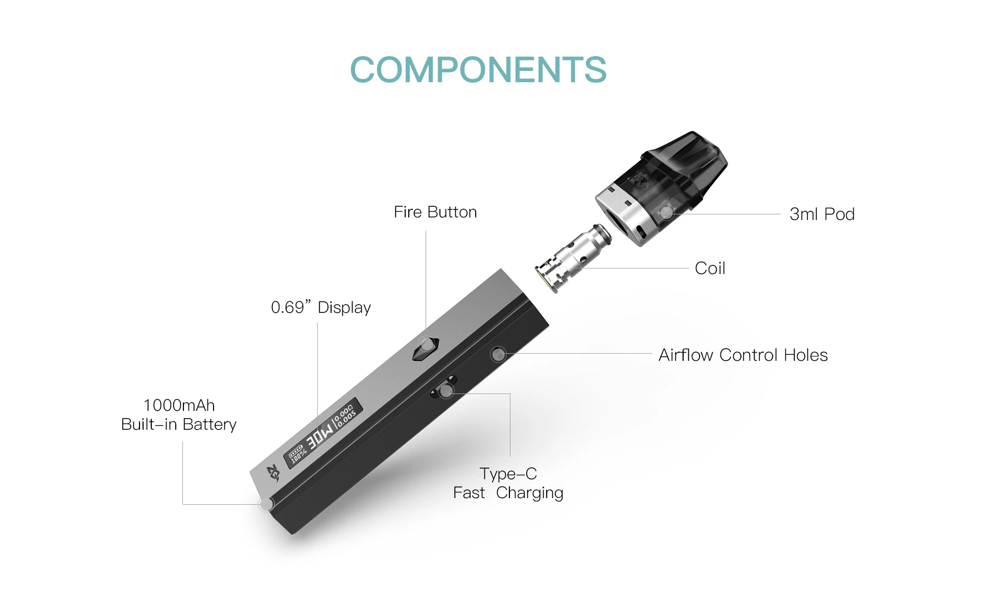 1. Bobine remplaçable (bobine de maille de 1.0ohm & 0.6ohm)