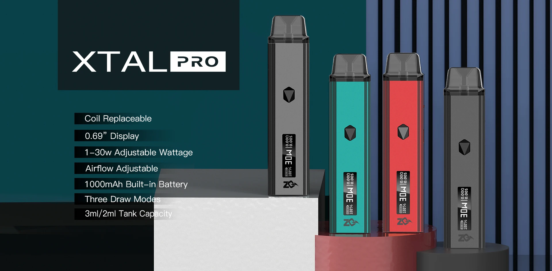 Kit de vapotage de Cigarette électronique ZQ XTAL Pro, avec système de dosettes, batterie intégrée 1000mAh, réservoir de 2/3ml, nouvelle Version 2021