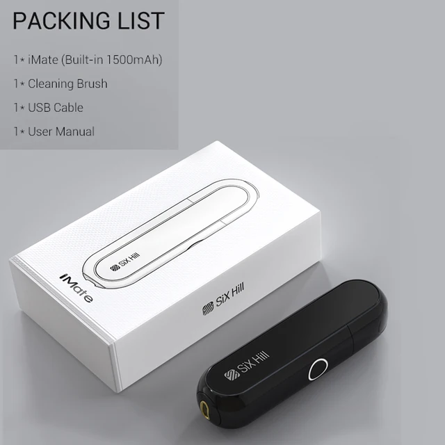 IMate est un tout-en-un par Six Hill. Léger et discret dans la poche, il vous offre un plaisir supérieur du tabac à tout moment, n’importe où. Pour un style de vie simple et relaxant, iMate vous offre un moyen plus facile de brancher et de profiter d’un bâton de tabac. Son aiguille en céramique solide chauffe le tabac uniformément pour éveiller le goût le plus savoureux. Pour une seule charge, iMate peut chauffer 18-20 bâtons, et peut même rester en veille toute l’année, ce qui vous libère considérablement des recharges fréquentes.