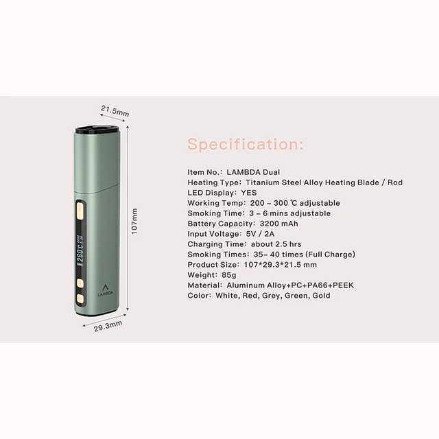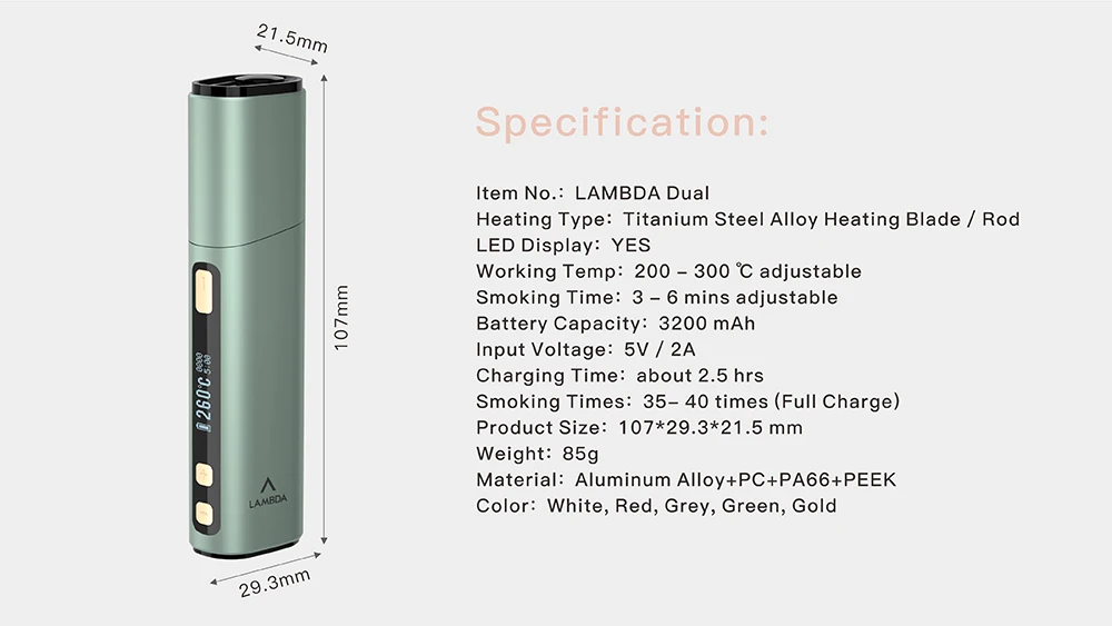 LAMBDA – double appareil anti-brûlure, lame de chauffage, OLED, temps de fumée et température réglables, Compatible avec tous les bâtons