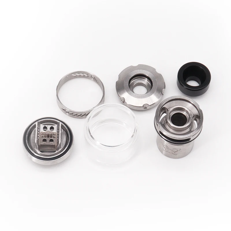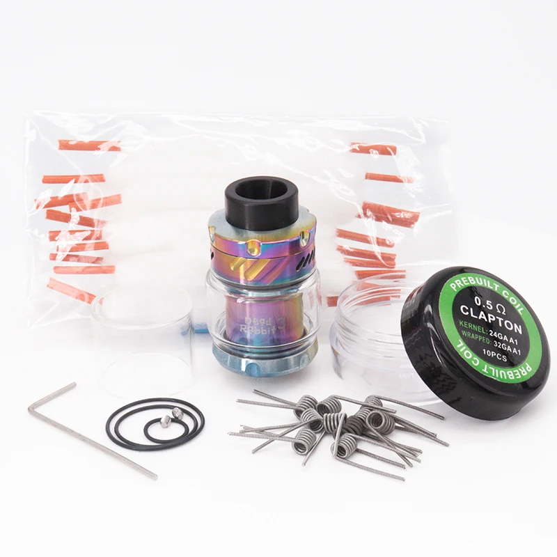Lapin 3 RTA dispose d’un diamètre de 25mm. Fini avec un pont sans poteau pour la configuration de double bobine, intégrant une capacité de jus de vape de 3.5ml, vous pouvez également choisir un verre à bulles avec ses 5.5ml. Il épouse une saveur impeccable et une vapeur massive lorsqu’il s’agit de son flux d’air de haut en bas, le flux d’air supérieur est assuré par deux fentes latérales et guide directement l’air vers le bas à travers son nid d’abeille. En ouvrant le bouchon supérieur, il soutient le système de remplissage supérieur pour réalimenter l’e-jus.