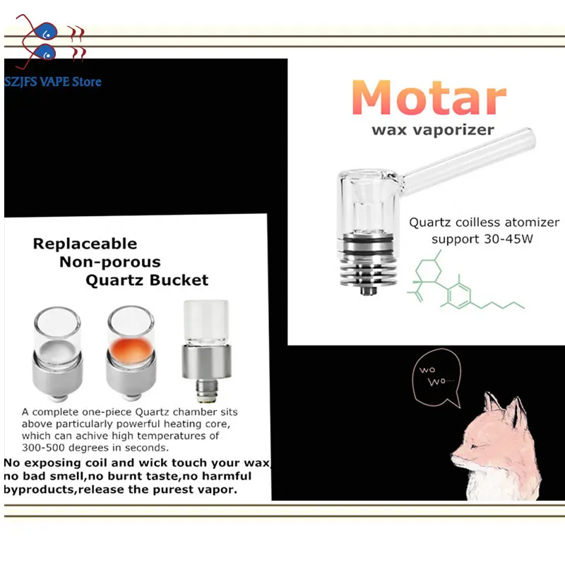 Longmada Motar atomiseur réservoir de cire Kit de Vape Quartz sans bobine embout en verre chambre de chauffage