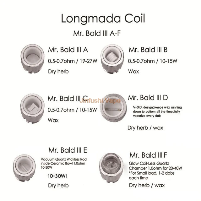Dernier modèle Longmada Mr chauve iii, chambre de bobine chauffante en céramique, réservoir d’atomiseur 510 pour cire, stylo vapoteur d’herbes sèches, Mod 2 en 1 en céramique de Quartz