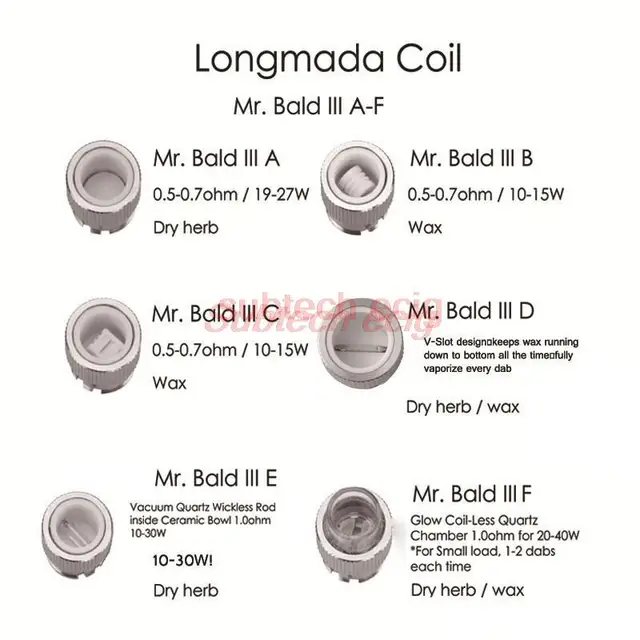 Longmada – Kit de démarrage pour herbes sèches, réservoir de cire Mr chauve III à 510 fils, atomiseur en céramique, bobine de chauffage, chambre pour stylo vapoteur, batterie Mod
