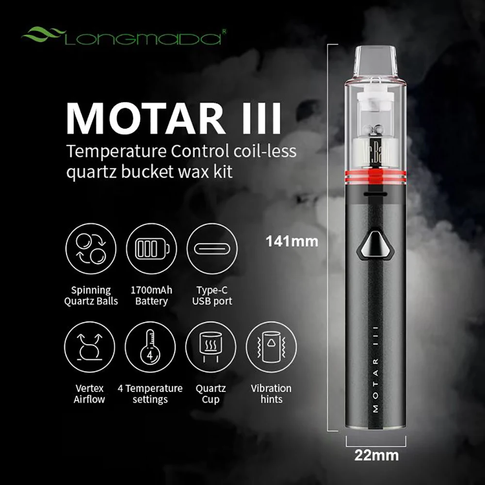 Longmada – stylo à vapeur Motar III, Kit pour vaporisateur de cire, batterie 1700mAh avec boule de Quartz rotative, 4 commandes de réglage de température