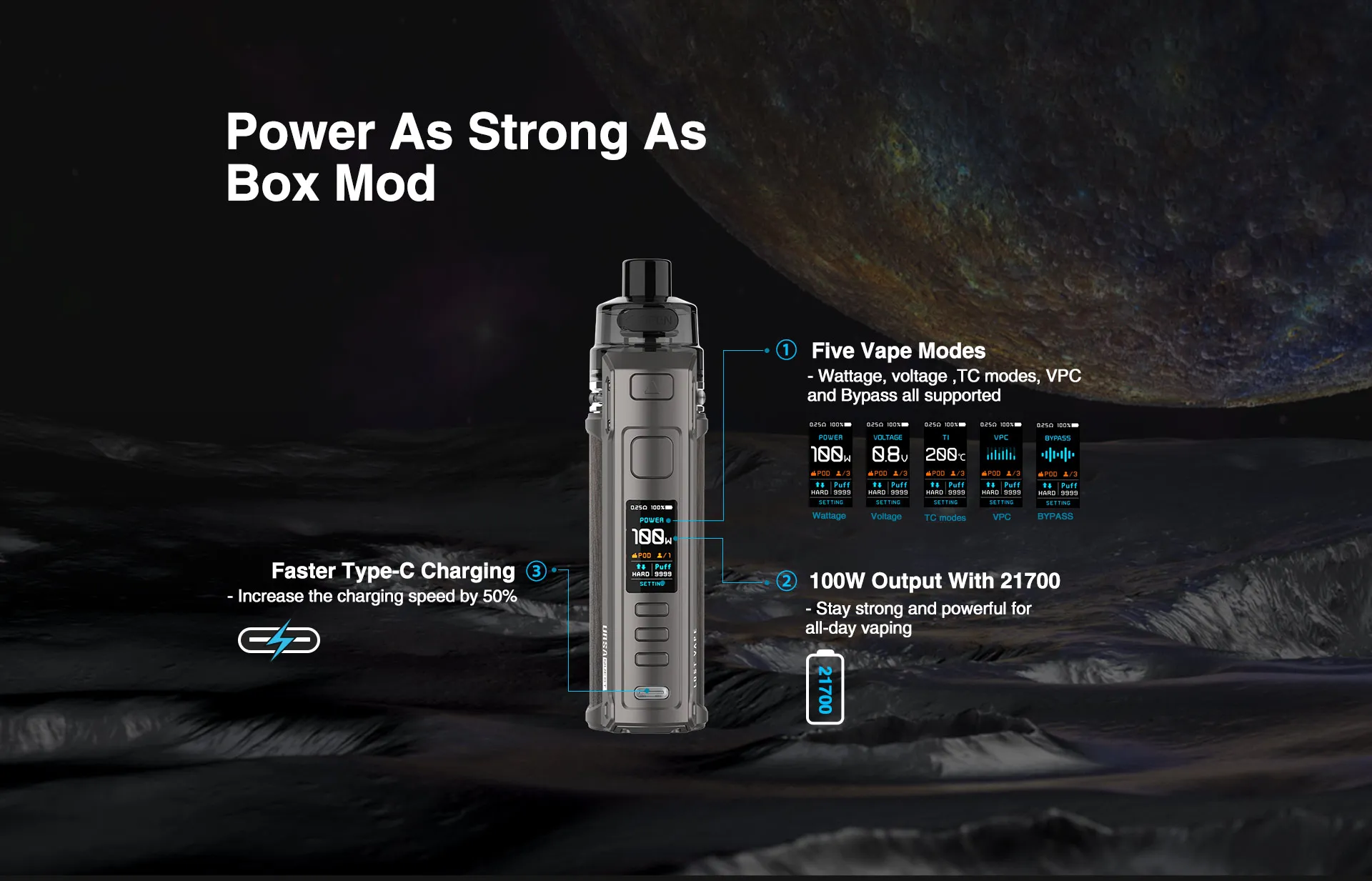 7. Cinq modes de vapotage: puissance, tension, TC, VPC et dérivation