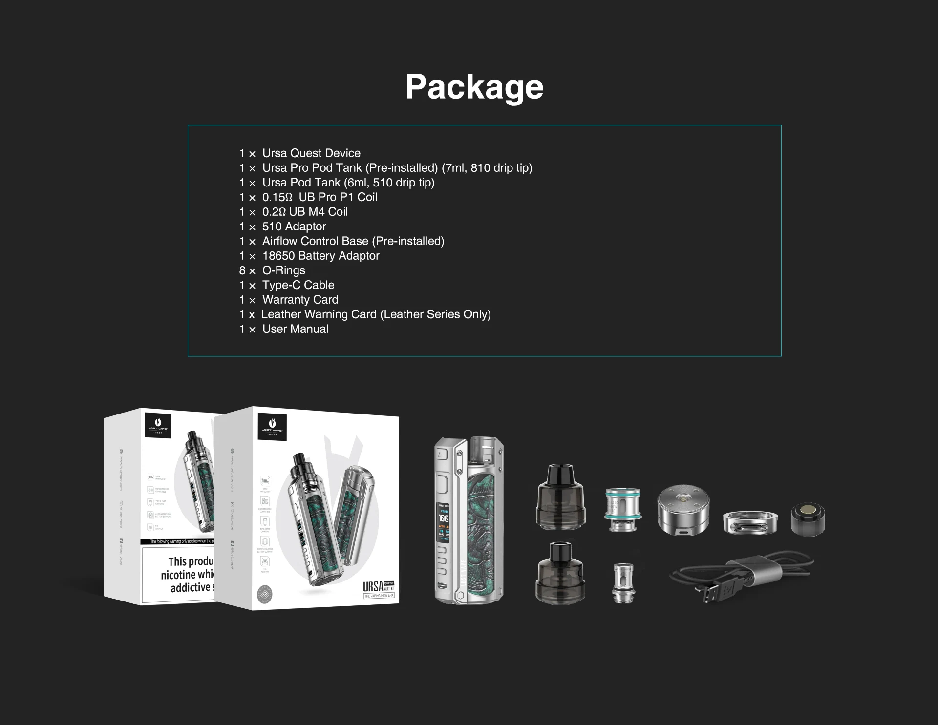 Le paquet du Kit de Pod multiple Lost Vape Ursa Quest est livré avec: