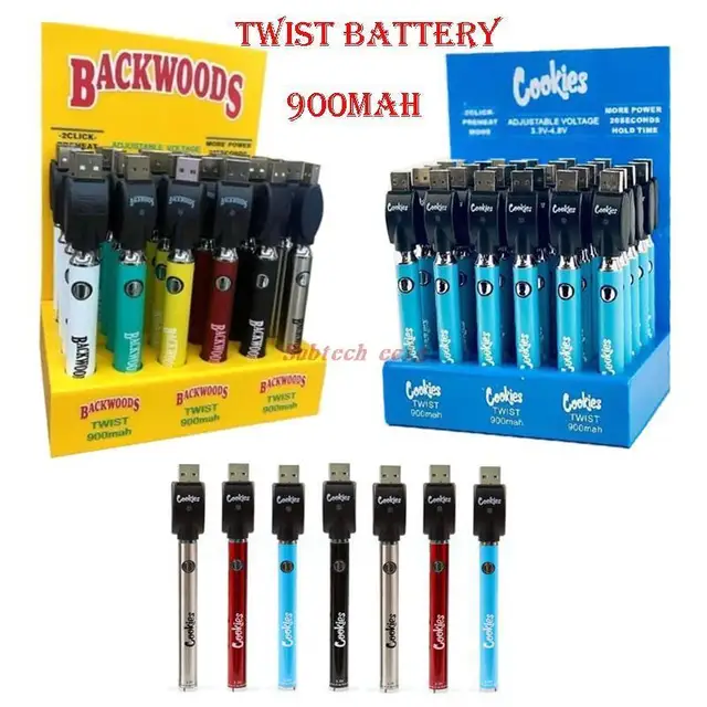 Cookies Backwoods 900mAh Preheat VV Twist Batteries Voltage Adjustable With USB Charger Fit 510 Thick Oil Cartridges 30pcs Pack