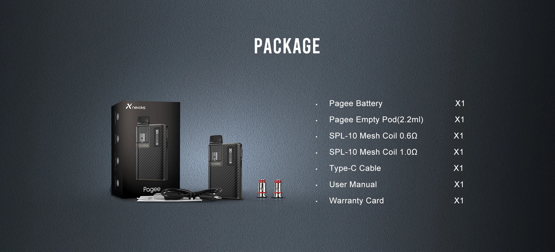 Nevoks – Kit de vapoteur Pagee, avec batterie 950mAh, dosette de 2.2ml, avec bobine de maille SPL-10, 0.6, 1.0