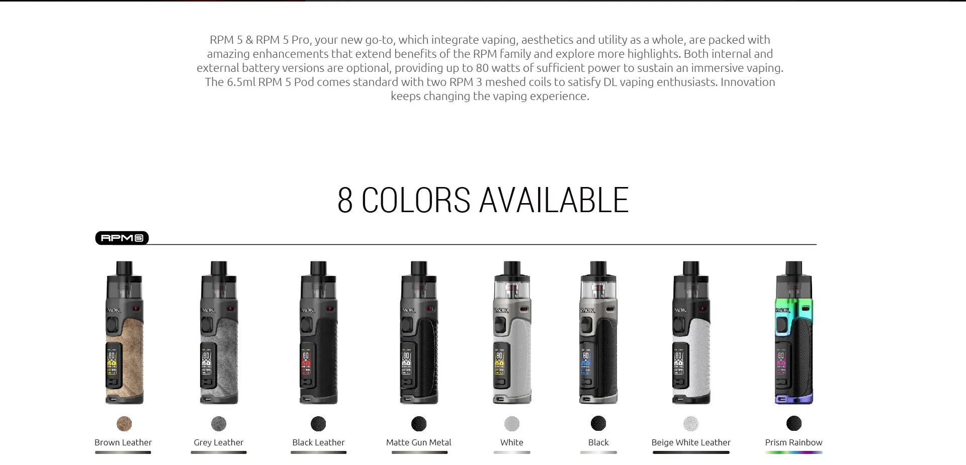 3pcs Empty Pod5pc RPM3 Mesh 0.15oh5pc RPM3 Mesh 0.23ohBeige White LeatherBlackBlack LeatherBrown LeatherGrey Leathergun metalPrism RainbowWHITE