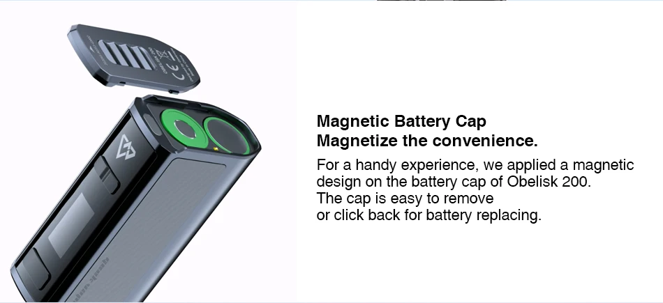 Geekvape OBELISK 200 Mod dispose d’une conception portable qui en fait le compagnon idéal en déplacement. L’extraordinaire portabilité n’est possible que grâce à la technique d’usinage CNC, gravure en une étape d’un seul bloc d’aluminium. En regardant les décors de surface oblisk 200, avec un design CMF que 4 couches se chevauchent les unes les autres, créant un effet d’affichage de couleur et de texture réfracte la lumière des deux côtés. Ses caractéristiques solides et durables rendent notre plus petit mod 200 encore plus résistant dans différentes circonstances. Il rend Obelisk 200 si léger et compact qu’il révèle une combinaison de beauté précise et de qualité structurelle. Avec une hauteur de 82mm et une largeur de 48.5mm, avec une telle taille de demi-paume, il est facile à transporter avec vous d’une seule main et de profiter d’une grande puissance quand il est temps de se détendre. Il y a un écran couleur TFT de 0.96 pouces à l’avant du corps, le rapport d’interface est très parfait et le contrôle est simple. Les doubles piles 18650 remplaçables font que la durée de vie de la batterie n’est pas un problème et supportent des performances massives jusqu’à 200W de sortie. La conception du double turbo rend l’obelisk 200 plus rapide et plus puissant. Livré avec une conception magnétique sur le capuchon de la batterie, le capuchon est facile à retirer ou à cliquer en arrière pour le remplacement de la batterie. Puce intelligente intégrée pour fournir une protection multiple.