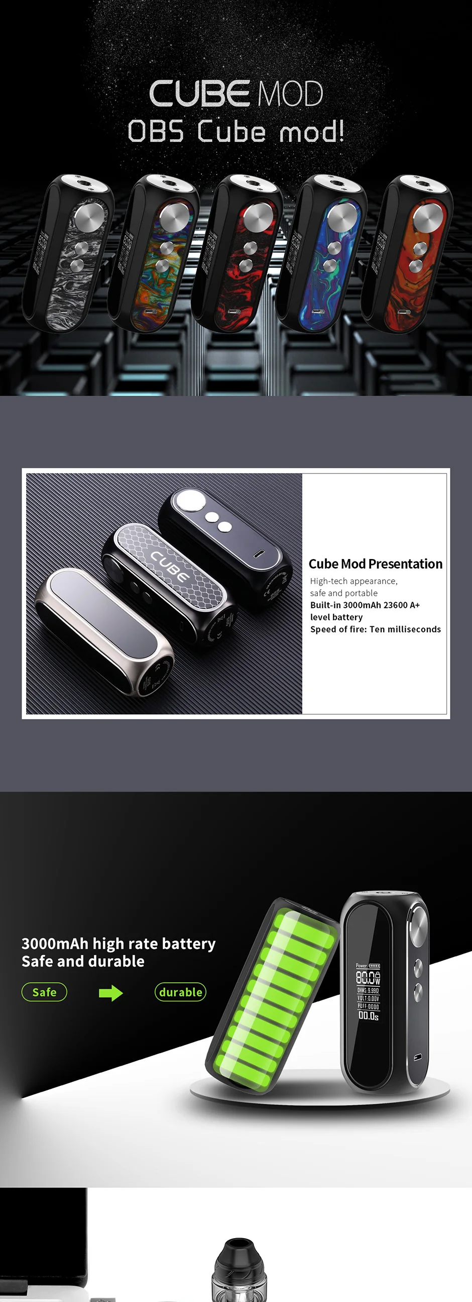 OBS Cube VW Box MOD batterie 3000mAh, Cigarette électronique Max 80W sortie Vape 3000mAh 1 an de garantie