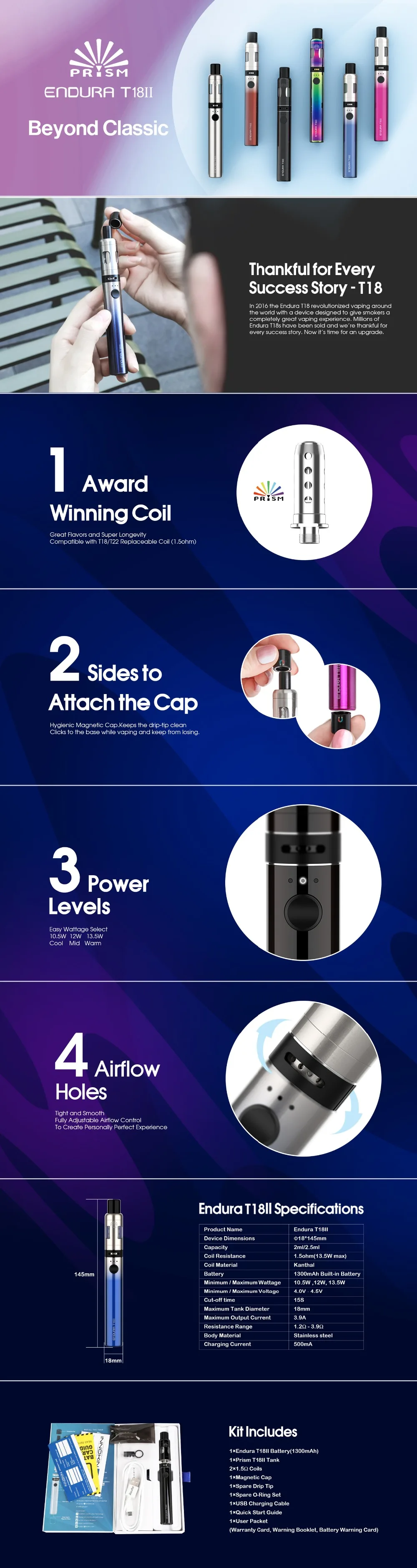 Original Innokin Endura T18 II Kit 2.5ml prisme T18 réservoir avec batterie 1300mAh ajustement T18/T22 1.5ohm bobine Vape stylo vaporisateur Kit