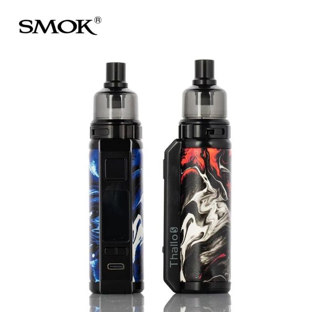 SMOK Thallo S Pod Mod Kit est une seule batterie 21700/18650 (100W) version du SMOK Thallo Pod Mod Kit. Presque la même taille que Thallo, Thallo S est légèrement plus grand, même structure et couleur, jeu de puces, cosses assorties, bobines compatibles; la différence est que Thallo S a une plus large gamme de réglage de la puissance en watts et différents types de batterie, la charge est également plus rapide. Le Thallo S est capable de produire des nuages impressionnants sans compromettre la saveur. Le Thallo S fonctionne avec le même jeu de puces IQ-XS que la version batterie intégrée mais dispose d’une puissance de 100 watts pour une expérience vape plus satisfaisante.
