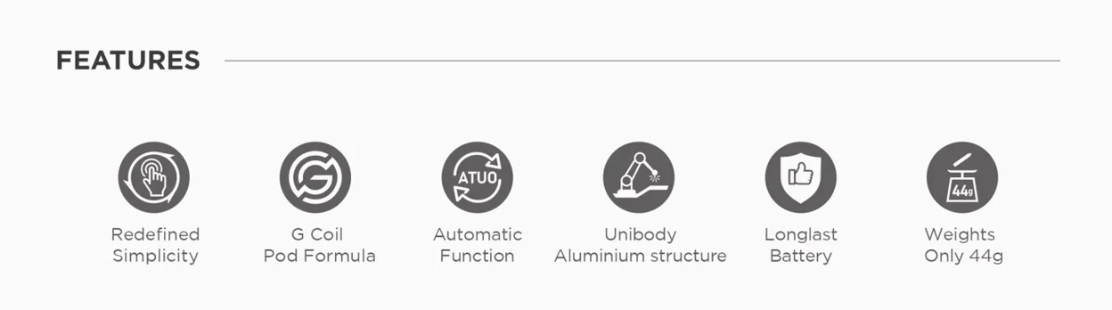 Comprend (1) G.Pod Kanthal Mesh Coil 0.6ohm tête d’atomiseur (pré-installé) (13 – 18W)