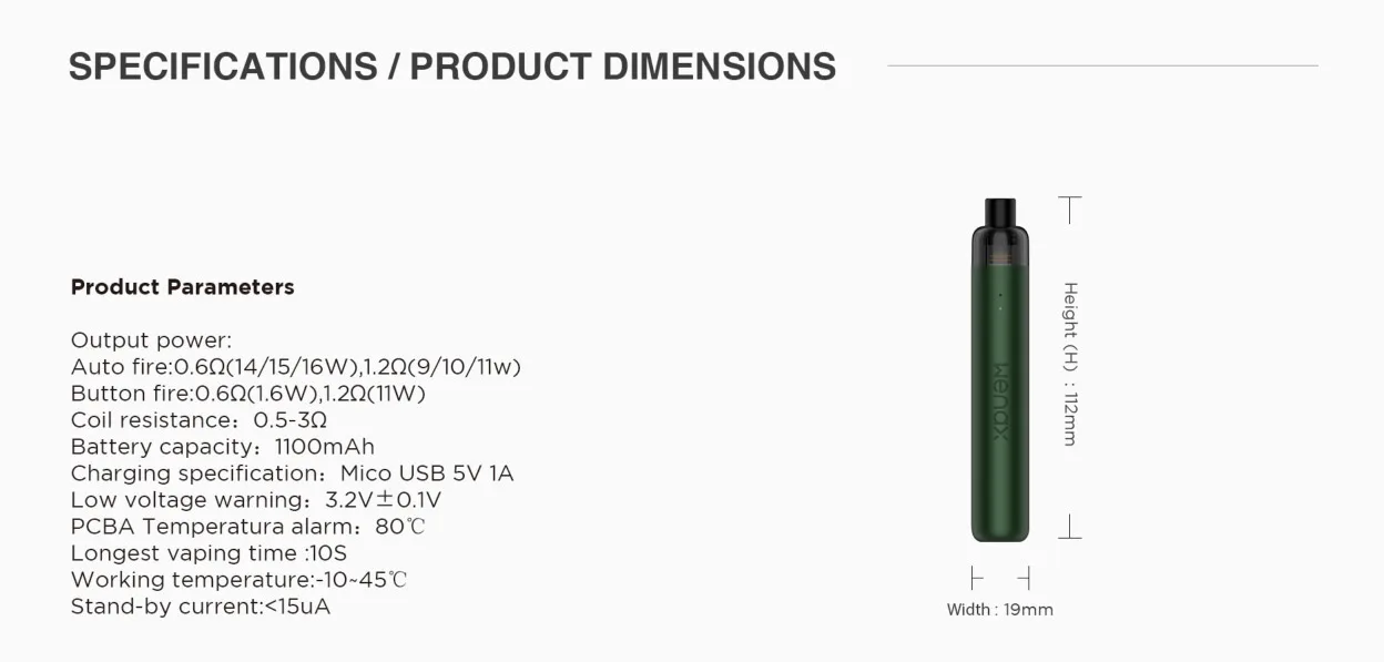 | Longest vaping time | 10s |