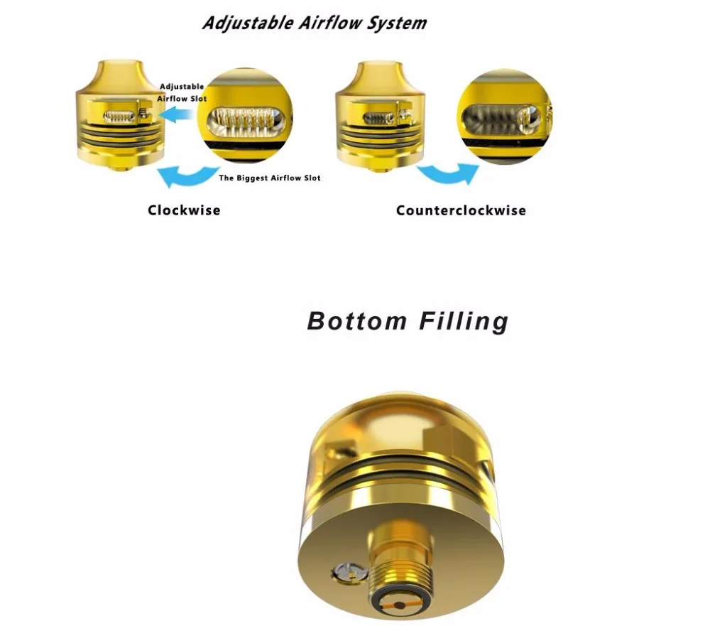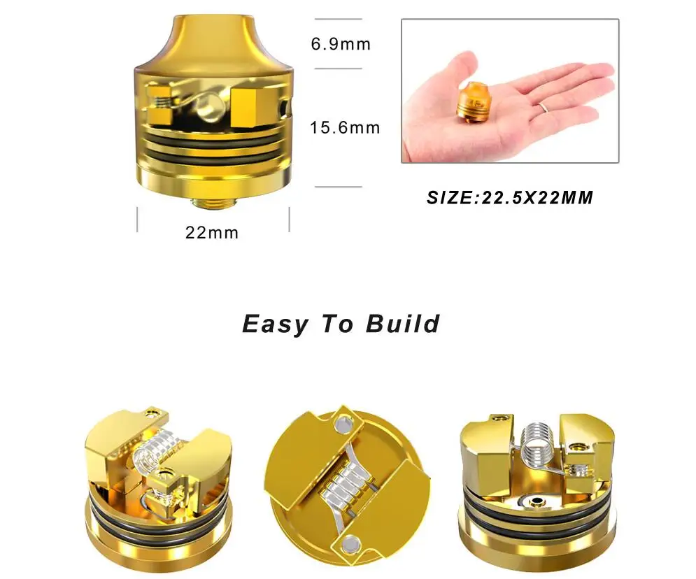 Oumier WASP – atomiseur 510 d’origine, réservoir d’égouttage reconstructible de 22mm, pointe d’égouttage adaptée à la boîte de tête 510 Mod Vape