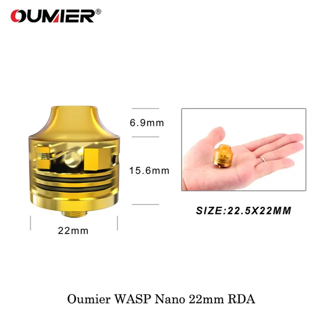 Cigarette électronique Oumier WASP NANO RDA 22mm réservoir d’égouttage reconstructible atomiseur 510 embout d’égouttage adapté 510 tête SMOK Box Mod Vape