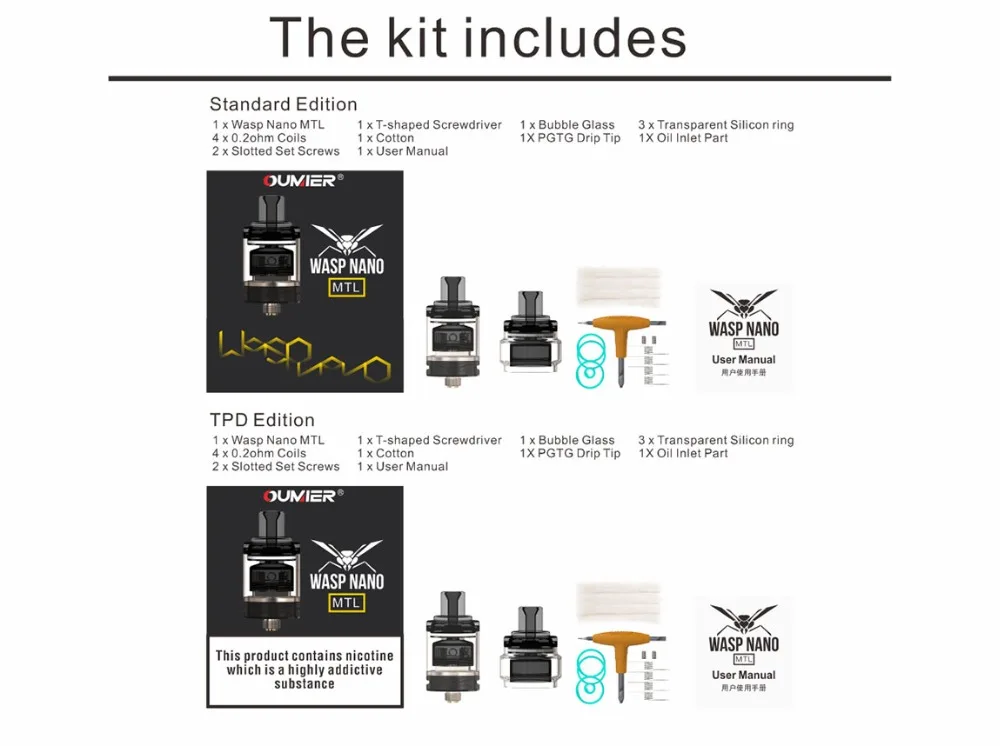 | Numéro de Modèle | Oumier Wasp Nano MTL RTA |