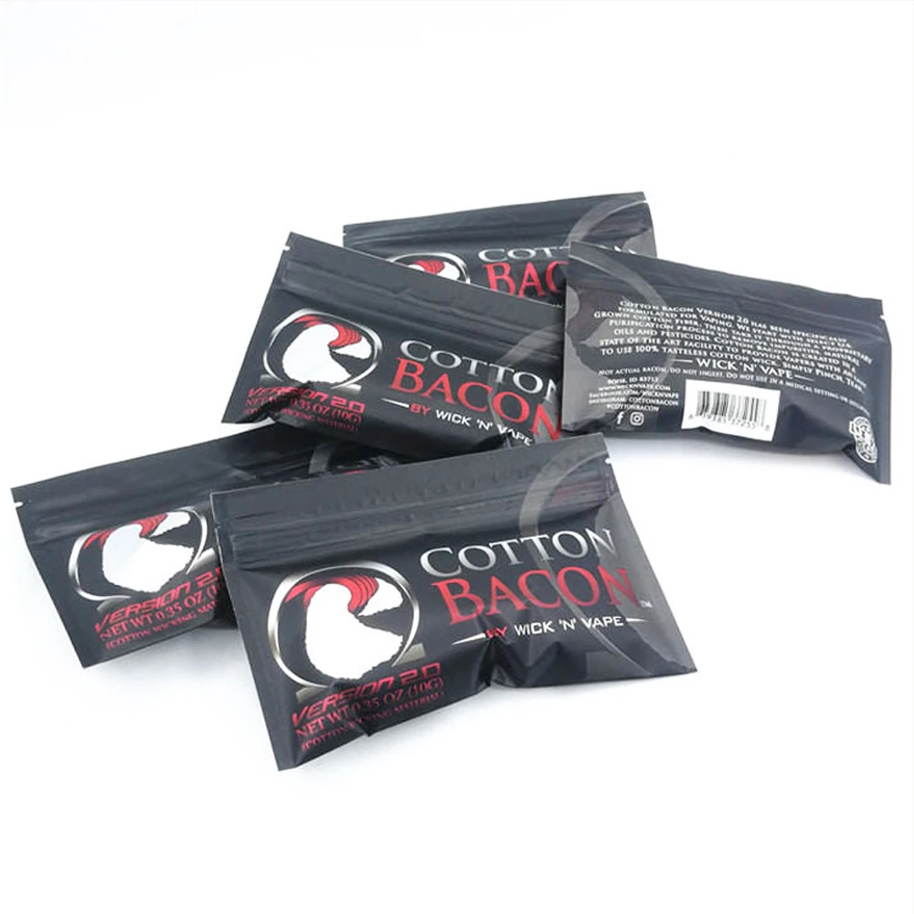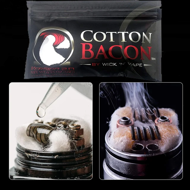 Le dernier coton Bacon 2.0 présente le coton biologique de qualité médicale fait pour les vapeurs! Le coton Bacon est le coton le plus propre et le meilleur du marché pour la vaporisation. Il est fabriqué par des vapeurs pour les vapeurs. Ce coton n’ajoute aucune saveur indésirable à votre vape et il se balance incroyablement bien. Le Bacon en coton est livré en fines bandes, donc il est pratiquement sans tracas. Aucune ébullition nécessaire, juste pincer, déchirer, mèche et vapoter! Il y a 10 bandes de coton dans chaque sac.