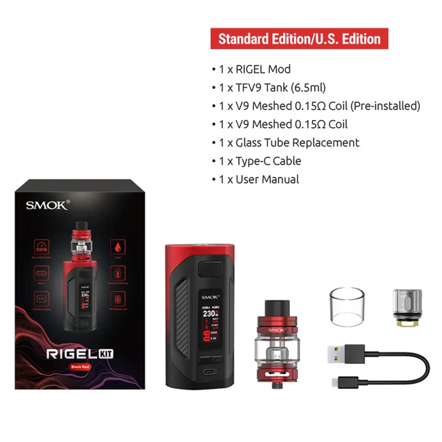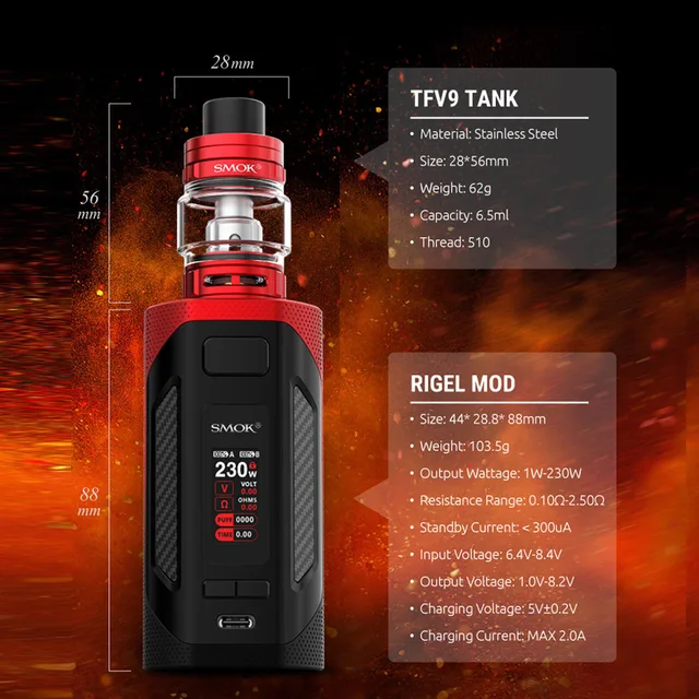 Plus récent SMOK 230W RIGEL KIT 6.5ml TFV9 réservoir V9 maille bobine électronique Cigarette vaporisateur VS Vape stylo RPM40 RPM80 cicatrice P5 G-PRIV3