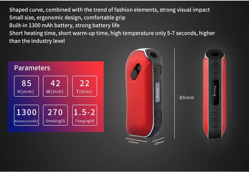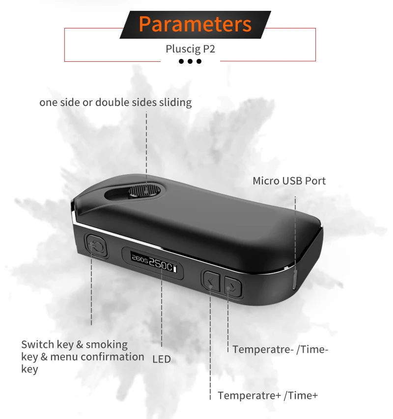 Pluscig – cigarette électronique P2 avec affichage LED TC Ecig, 1300mAh, Kits de vapotage, compatible avec marque, bâton de tabac chauffant