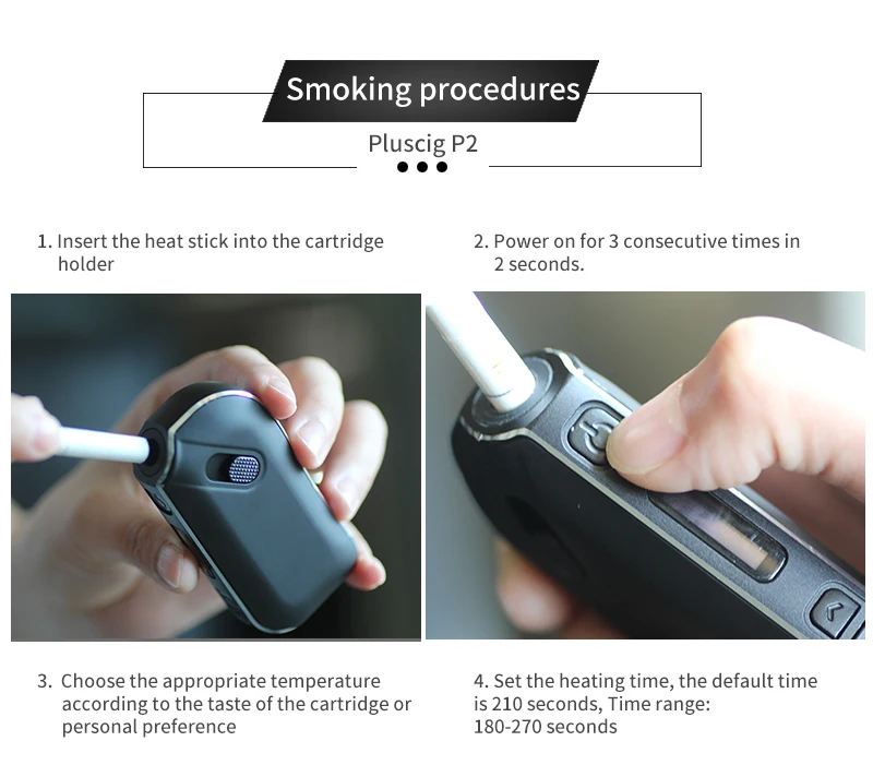 1. Insérez le bâton thermique dans le porte-cartouche 2. Allumez 3 fois consécutives en 2 secondes.