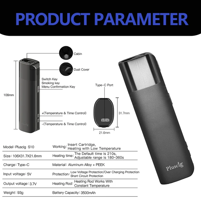 Pluscig – Cigarette électronique S10, Kit Mod, batterie 3500mah, chauffage du tabac, herbe sèche, adapté à IQO Vape Stick S1899
