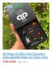 QP Design Nio RDA RSA – atomiseur Squonk reconstructible, réservoir à bobine unique réglable, flux d’air supérieur de 22mm, vs QP kali v2