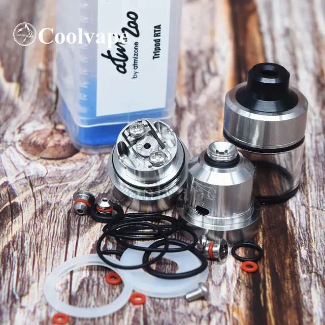 Atmizoo a basé la conception du trépied sur le concept d’un mécanisme sans fil avec des actions de torsion et de traction/poussée afin de concevoir et de fabriquer des pièces de haute précision qui facilitent la vaporisation avec un RTA. L’accès instantané au pont ne peut être plus simple et plus rapide. Il suffit de tourner, d’aligner les petits triangles qui se trouvent sur les côtés de la cheminée et du pont, puis de tirer afin d’accéder à votre pont très rapidement, à tout moment, même avec un réservoir plein de liquide. Un concept similaire est appliqué au capuchon supérieur pour remplir le liquide, alignez simplement les triangles sur le côté du capuchon supérieur avec le point sur le bord du réservoir et tirez vers le haut pour remplir à travers les grandes fentes de liquide. Pas besoin de s’inquiéter si les points et triangles sont difficiles à voir, vous pouvez tourner tout en tirant doucement jusqu’à ce que vous sentiez avec les onglets localiser les encoches comme point de déverrouillage de chaque mécanisme.