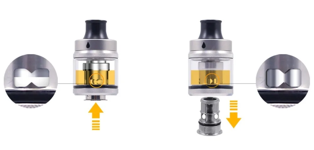 Le premier produit Aspire à utiliser un design ingénieux qui scellera les trous d'évacuation de l'humidité dans le réservoir lorsque la bobine est enlevée.
