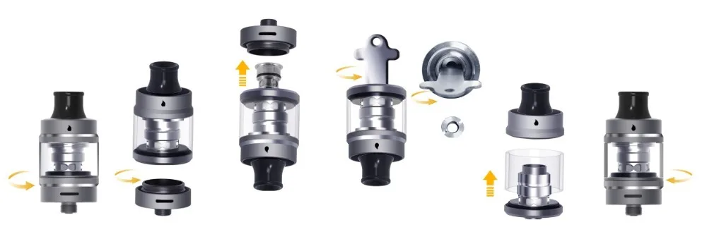 1 * réservoir Tigon (3.5 ml)/1 * tube de verre/2 * bobines Ni80 (1 * 1,2Ω et 1 * 0,4Ω préinstallés) /10 * joints toriques/1 * pointe d'égouttement supplémentaire/1 * manuel d'utilisation/1 * carte de garantie