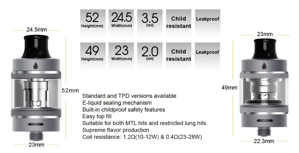 | compatible coil | 1.2ohm (10-12W) & 0.4ohm (23-28W) |