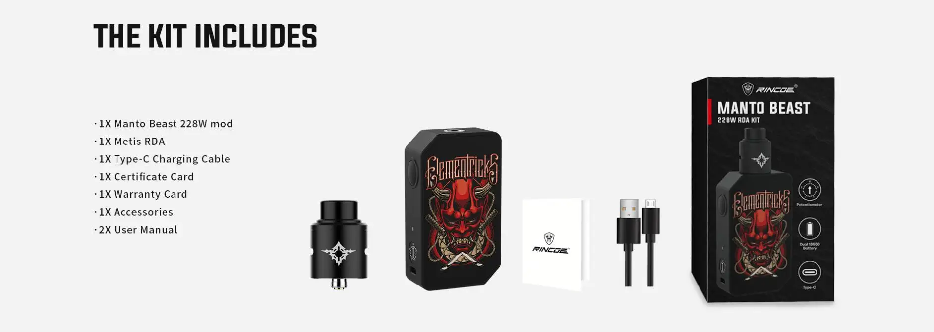 Rincoe – Kit de Cigarette électronique Original Manto Beast RDA, 228W, avec réservoir Metis RDA