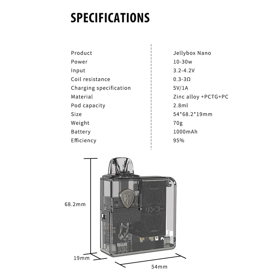 Rincoe – Kit de vapoteur de cigarettes électroniques, Jellybox, avec batterie de 1000mAh, dosette de 2.8ml, VS KOKO Prime