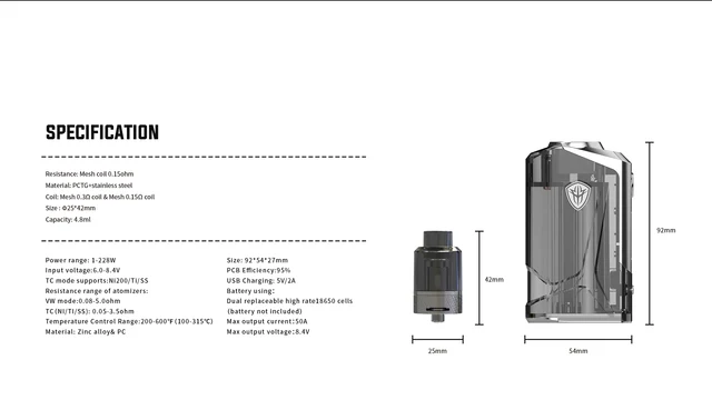 2 avis pour Rincoe – Kit de vapoteur gelée Original 228w Max, pré-commande, alimenté par deux Batteries 18650, Design Transparent 100%